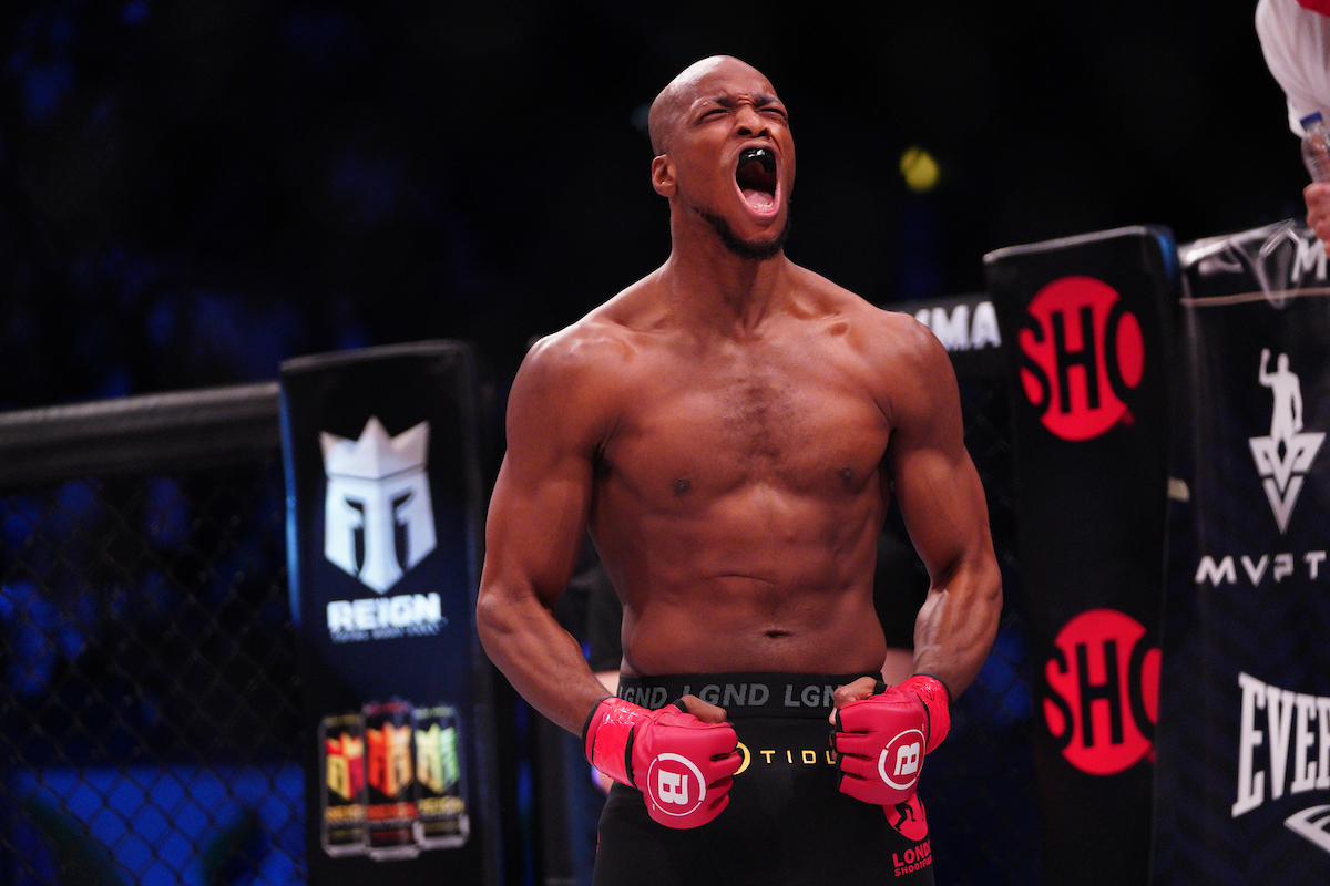 WEMBLEY, LONDON - OCTOBER 1: (L-R) Michael Page prepares to fight Douglas Lima in their welterweight bout during the Bellator 267: Lima v MVP 2 event at The SSE Arena on October 1, 2021 in Wembley, London, England. (Photo by Scott Garfitt/PxImages)