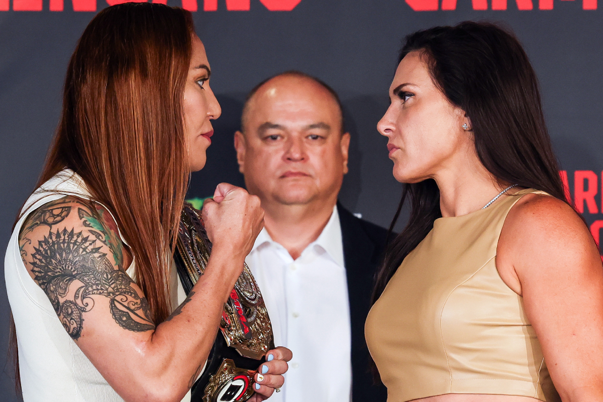 Cyborg protagoniza encarada tensa com Zingano em coletiva pré-Bellator 300; veja