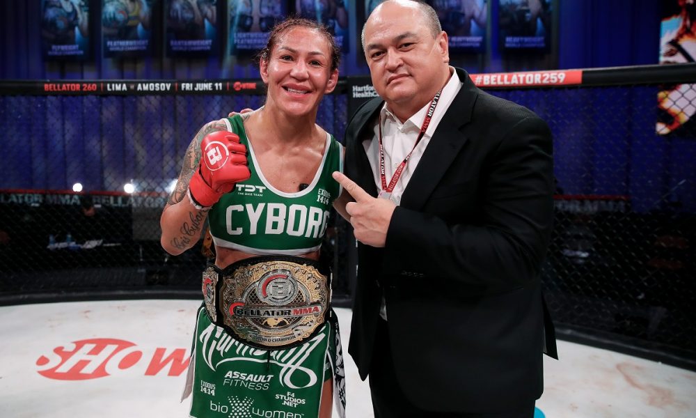 Em quase duas décadas no MMA, ‘Cyborg’ foi a primeira atleta a conquistar títulos em quatro grandes organizações de MMA (Bellator, UFC, Strikeforce e Invicta FC). Pelo Bellator, a atleta já estreou conquistando o cinturão dos penas, ao nocautear a então campeã Julia Budd, em janeiro de 2020. Nove meses depois, a veterana defendeu seu título pela primeira vez, ao finalizar Arlene Blencowe, e na última sexta-feira, saiu novamente do cage com a cinta até 66 kg sob sua posse após superar Leslie Smith.