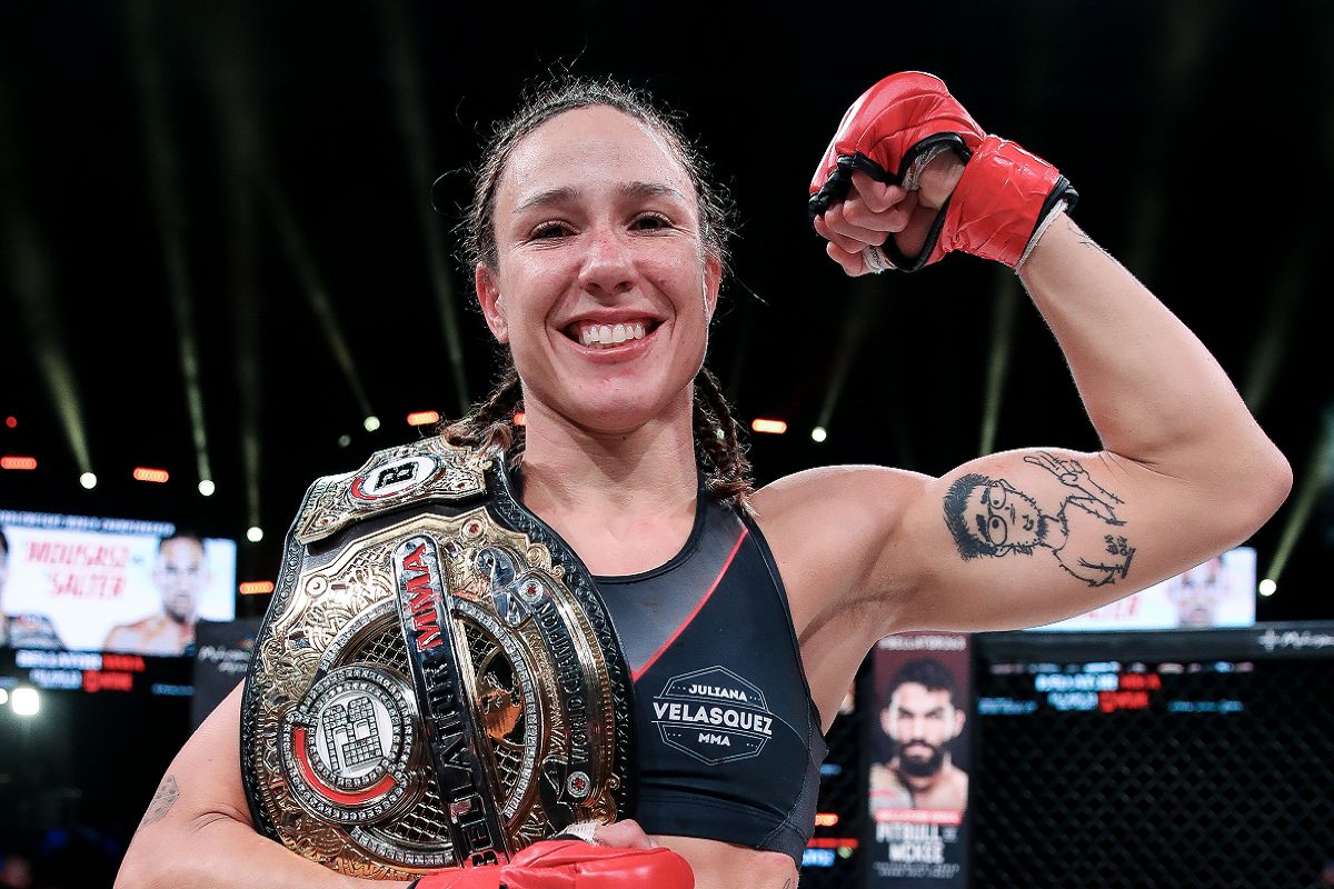 Ainda invicta no MMA profissional, Juliana Velasquez soma 12 vitórias e nenhuma derrota na carreira. A ex-judoca conquistou o cinturão peso-mosca do Bellator em dezembro de 2020, ao superar a então campeã Ilima-Lei Macfarlane, por pontos. Já na sua primeira defesa de título, a brasileira derrotou Denise Kielholtz, na decisão dividida dos juízes, no último mês de julho.