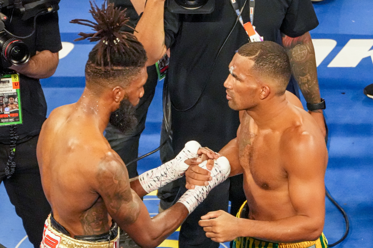 Co-main event da noitada de boxe realizada neste sábado (20) no ‘Hotel Cassino Mandalay Bay’, na cidade de Las Vegas (EUA), Esquiva Falcão vs Patrice Volny protagonizou movimentados assaltos antes de surpreender os presentes com um final inesperado – que, no entanto, premiou a maior agressividade do atleta brasileiro.