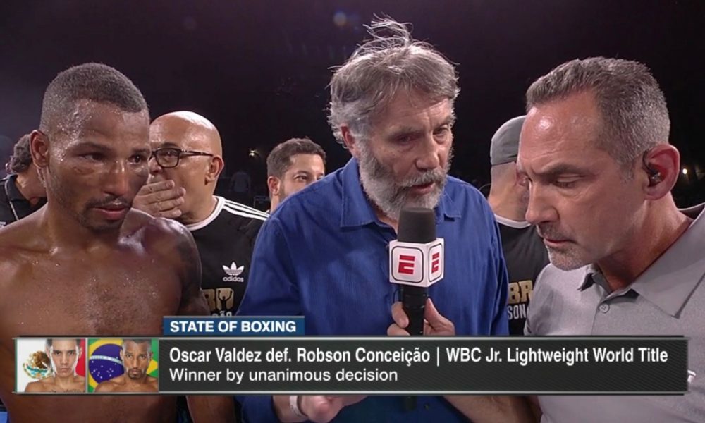 A controversa derrota de Robson Conceição para o mexicano Oscar Valdez na última sexta-feira (10), no Arizona (EUA), em disputa pelo cinturão dos superpenas do Conselho Mundial de Boxe (WBC), ainda deve ganhar novos capítulos. De acordo com a ‘ESPN’ americana, Sergio Batarelli – empresário do pugilista baiano – apresentou uma queixa junto à WBC, protestando contra a atuação dos juízes laterais, que apontaram vitória unânime do campeão em suas papeletas, e exigindo uma revanche imediata.