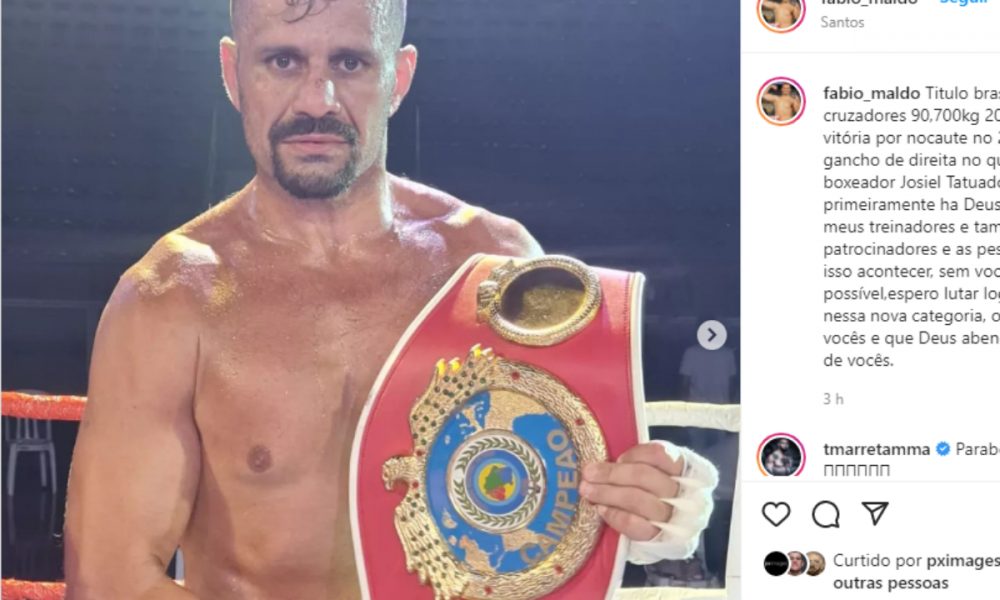 Ex-lutador do UFC, Fábio Maldonado mostrou mais uma vez que tem o boxe afiado no último sábado (12) e garantiu mais uma importante conquista na sua carreira. O ‘Caipira de Aço’, como é conhecido, nocauteou Joselito dos Santos, o ‘Tatuado’, em evento realizado na cidade de Santos (SP), e se sagrou campeão brasileiro do peso-cruzador (90,7 kg) do Conselho Nacional de Boxe.