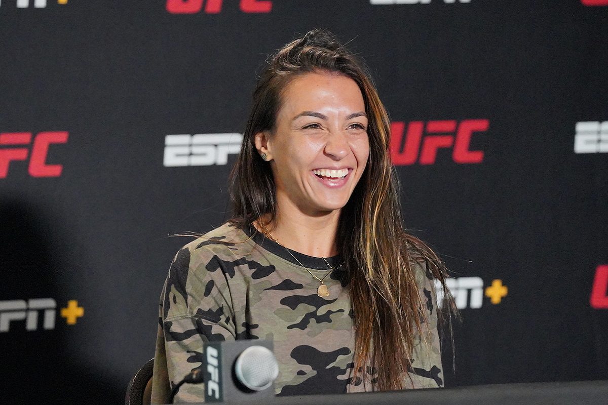“Foi uma questão de oportunidade. A Vivi é uma atleta muito forte e bem ranqueada. Então para mim é uma oportunidade muito boa de se aproveitar. Então agarrei com unhas, dentes e braços e tudo (risos). Porque quero me destacar, independentemente se for na categoria do peso-palha ou do peso-mosca. Penso que tenho que estar disponível para o UFC. Sou uma funcionária proativa), entendeu? (risos) É melhor eu estar competindo na categoria de cima, em uma categoria que não é a minha oficial, do que estar parada esperando luta. Então se não tem luta no 52kg e aparecer uma oportunidade de lutar com 57kg, eu agarro. Ainda mais uma oportunidade como essa”, explicou.