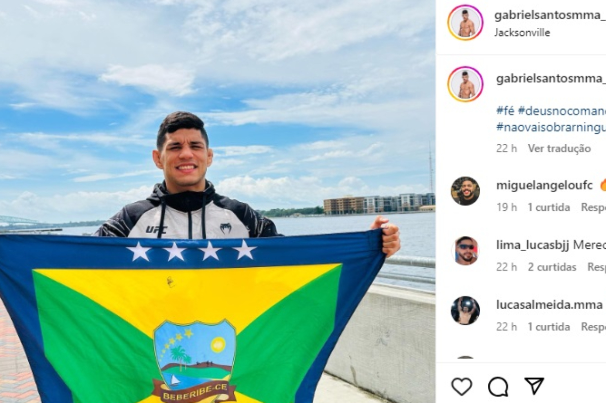 Gabriel Santos, de 26 anos, é uma promessa do MMA e que luta profissionalmente desde 2014. Antes de estrear no UFC, em março, ‘Mosquitinho’ se destacou ao atuar pelo LFA. Em sua carreira, o brasileiro disputou 11 combates, venceu dez, sendo sete pela via rápida (quatro por finalização e três por nocaute), e perdeu uma vez. Seus principais triunfos foram sobre Elves Brener e José Delano.