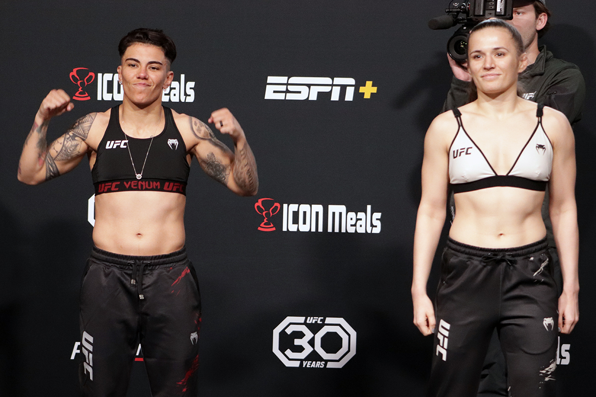 “Não teve tempo para pensar, tempo para treinar, não teve tempo para nada (risos). Mas, como eu já vinha do meu camp (do UFC Rio), não parei 100%, estava lá na minha cidade, mas fazendo treinos de jiu-jitsu e muay thai. Então o corpo não desativou. Na sexta-feira o mestre me deu a notícia de que a luta da Taila não aconteceria, se eu gostaria de substituí-la. Respondi: ‘Mestre, você sabe que para mim não existe tempo ruim, se você falar que a gente vai, eu vou’. E no sábado de madrugada a gente recebeu um comunicado do Ali, meu empresário, dizendo que a luta tinha sido fechada, para fazer as malas que a gente já estava voltando para Las Vegas”, detalhou.