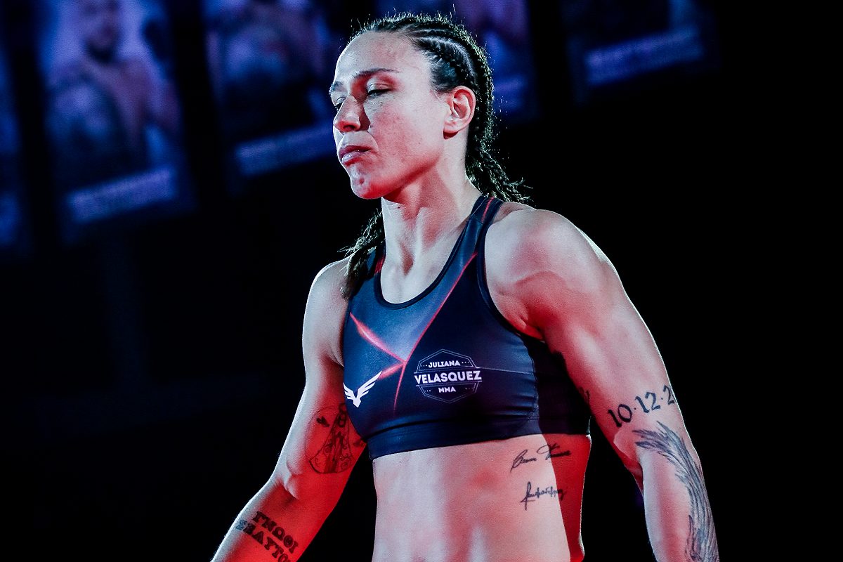 No MMA profissional desde 2014, Juliana Velasquez tem um cartel invicto na modalidade. Até o momento, a brasileira soma 12 triunfos, sendo os últimos sete pelo Bellator. A lutadora sagrou-se campeã da divisão em dezembro do ano passado, quando venceu Ilima-Lei Macfarlane por decisão unânime dos jurados.