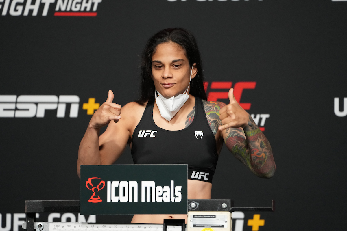 “O ‘camp’ foi redondinho, do jeito que tem que ser. Graças a Deus, tenho a oportunidade de lutar com atletas conhecidas agora. Não posso deixar essa oportunidade passar de maneira alguma. Ela tem um jogo bom, vai querer grudar, como sempre faz, mas estou em casa e vou fazer meu melhor jogo. Tenho bastante armas para vencer. Vou tentar acabar com a luta o tempo todo, com as brechas que ela oferecer, impondo um ritmo forte”, declarou a brasileira, antes de completar.