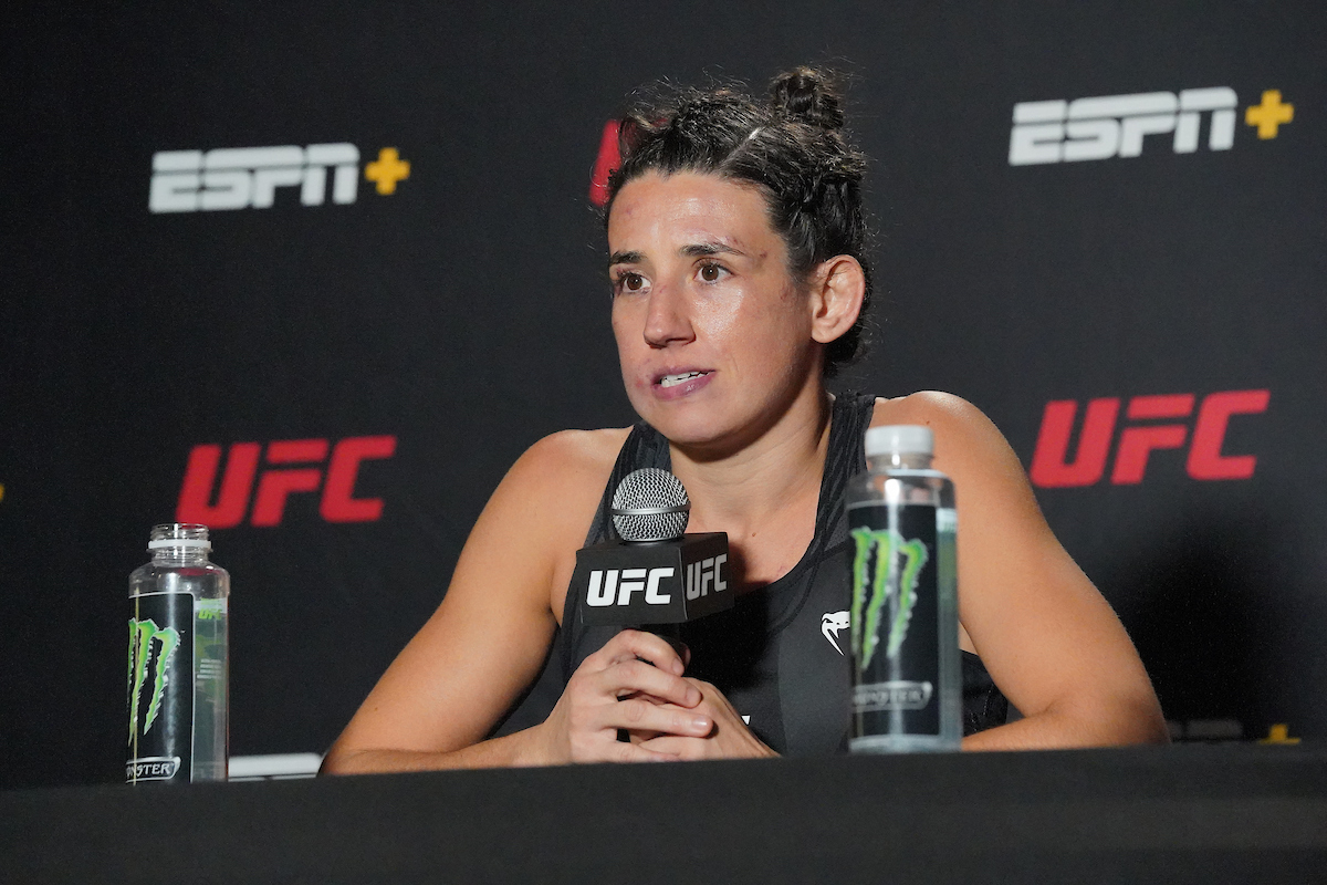 “Desde que fiz minha primeira luta no UFC todo mundo quer me jogar no chão. Eu venho do muay thai, mas sempre dei atenção a minha parte de chão, meu grappling, meu jiu-jitsu e venho evoluindo. Ela tentou me quedar, mas mantive a distância e ela não me achou. Ela quedou uma vez, mas me mantive tranquila, vi que ela estava gastando toda a energia dela ali, então me guardei e me defendi para voltar melhor. Podem vir com esse pensamento, porque estarei sempre trabalhando meu wrestling, aprimorando meu jiu-jitsu e vocês ainda vão ver eu finalizar uma menina do grappling”, avisou.