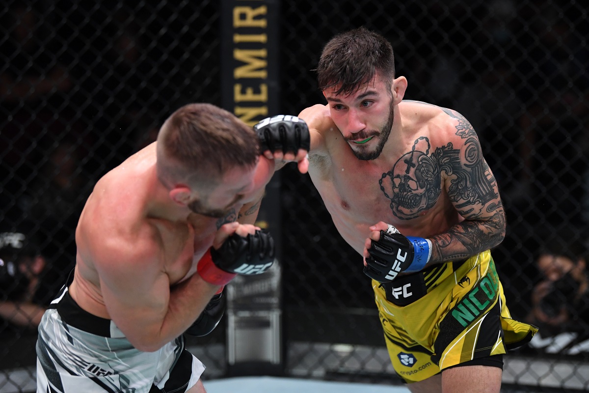 Matheus Nicolau estreou no UFC em 2015, vencendo suas três primeiras lutas pela entidade e sendo derrotado apenas em seu quarto compromisso. Depois desses quatro primeiros combates disputados, o peso-mosca foi dispensado pelo Ultimate, sendo recontratado e fazendo sua reestreia em 2021, após rápida passagem por outros eventos. Em sua retomada na companhia, o lutador já superou Manel Kape e Tim Elliott.
