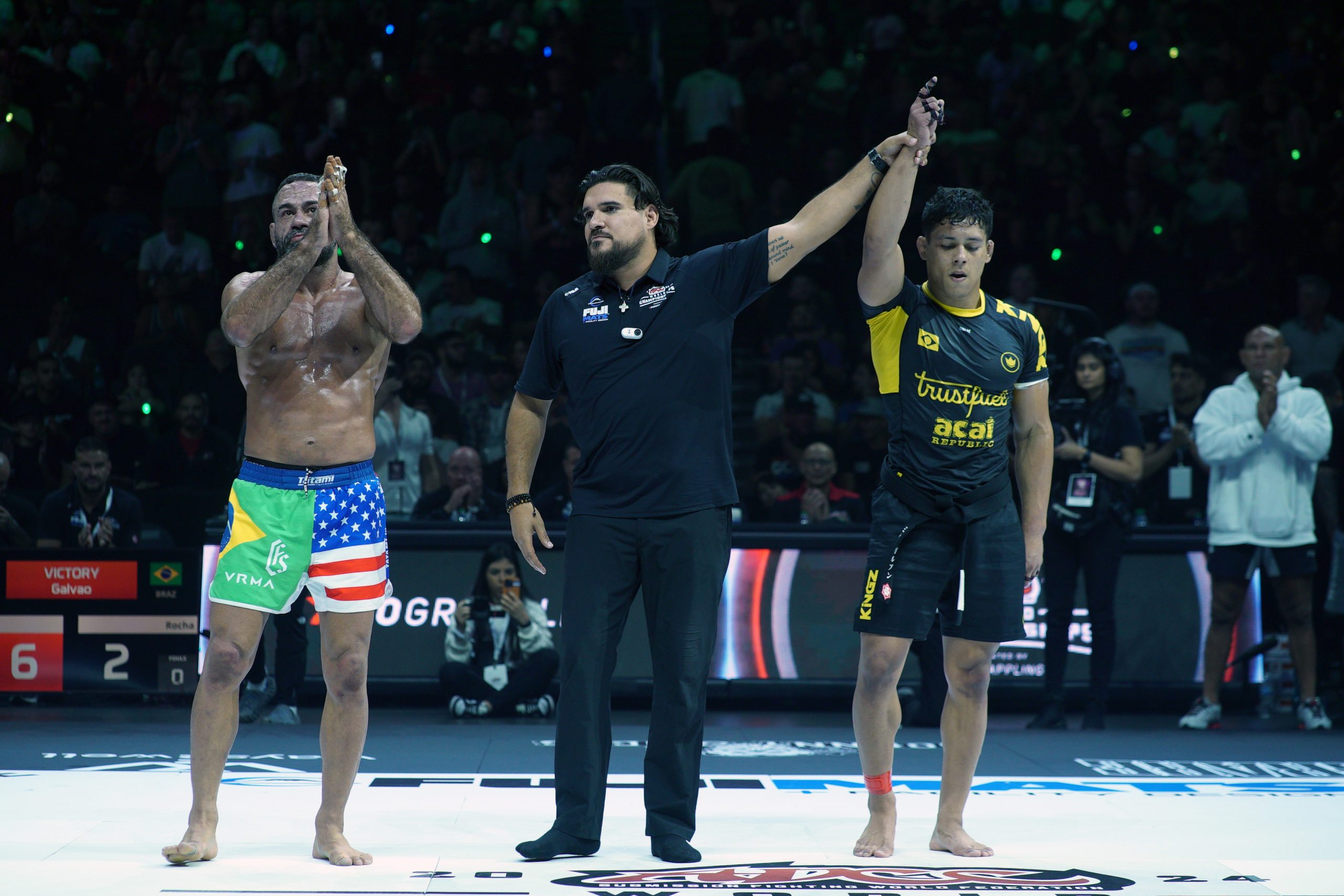 É emocionante demais poder estar ganhando meu primeiro título de ADCC. O título é bacana demais, mas o que importa realmente são as pessoas que estavam ali ao redor de mim. Esse evento tem sido mágico e abençoado. Vi o quanto sou dependente de Deus e meu time para ser a pessoa que sou hoje. Finalmente a jornada foi concluída, conseguimos o ‘Grand Slam’ e agora é se divertir e dar uma relaxada (risos). Estou com 20 anos agora. Não sei como explicar (conquistas tão jovem). Sempre coloco nas mãos de Deus. Em 2022 tive uma derrota, um ano que mexeu e me abalou um pouco. Mas Deus dá as batalhas mais duras aos soldados mais fortes. Se Ele não tinha me dado a vitória naquele ano, é porque ele guardou esse momento especial para cá, em 2024”, exaltou Mica.