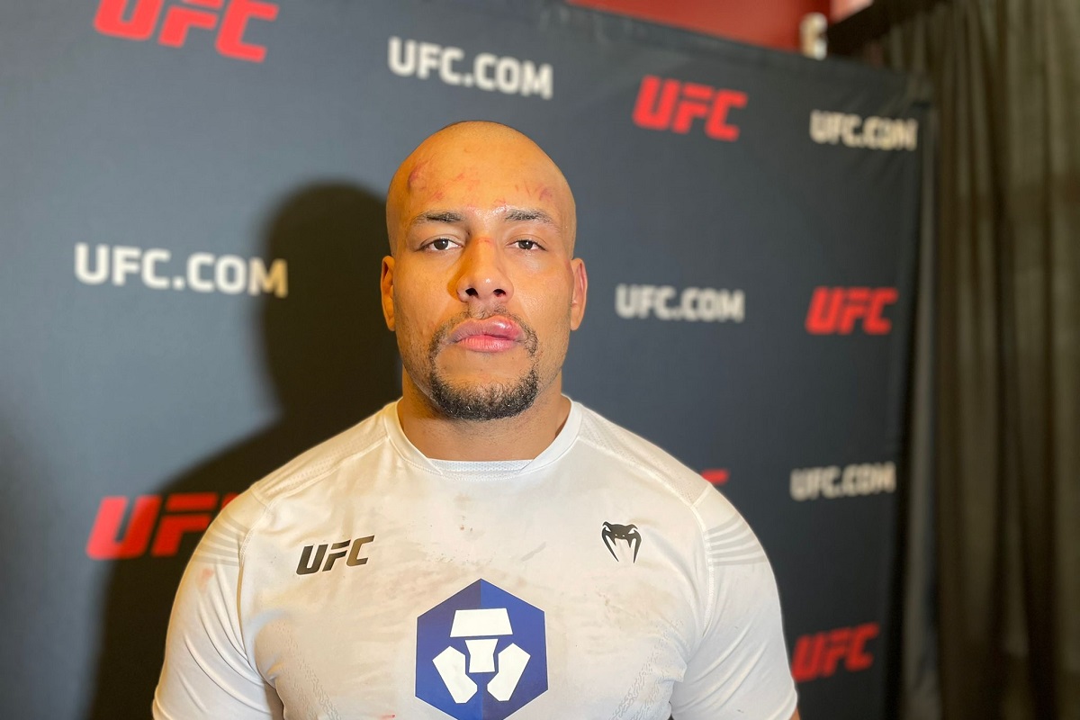 “Achei que ia ser duro, mas não desse jeito. O cara era duro, mas tivemos coração de leão e demos a volta por cima. Ele é rápido, me pegou com bons cruzados e acabei me perdendo, fiquei um ponto tonto. Entrei nas pernas e recebi umas cotoveladas, mas nem senti. Voltei para o segundo round, tive paciência, imprimi meu jogo (que era colocar para baixo)”, afirmou o brasileiro, antes de completar o raciocínio.
