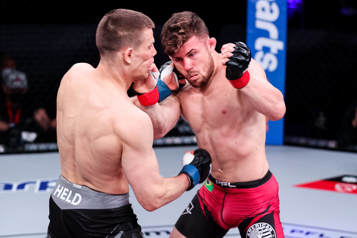 Invicto há quatros anos e bi-campeão do torneio dos pesos-leves (70kg) do PFL, o brasileiro Natan Schulte foi surpreendido nesta sexta-feira (23). O duelo contra Marcin Held, que fez parte do card que marcou a estreia da temporada 2021 do evento, foi movimentado e agressivo, mas decidido pelo ímpeto do polonês nos assaltos iniciais.