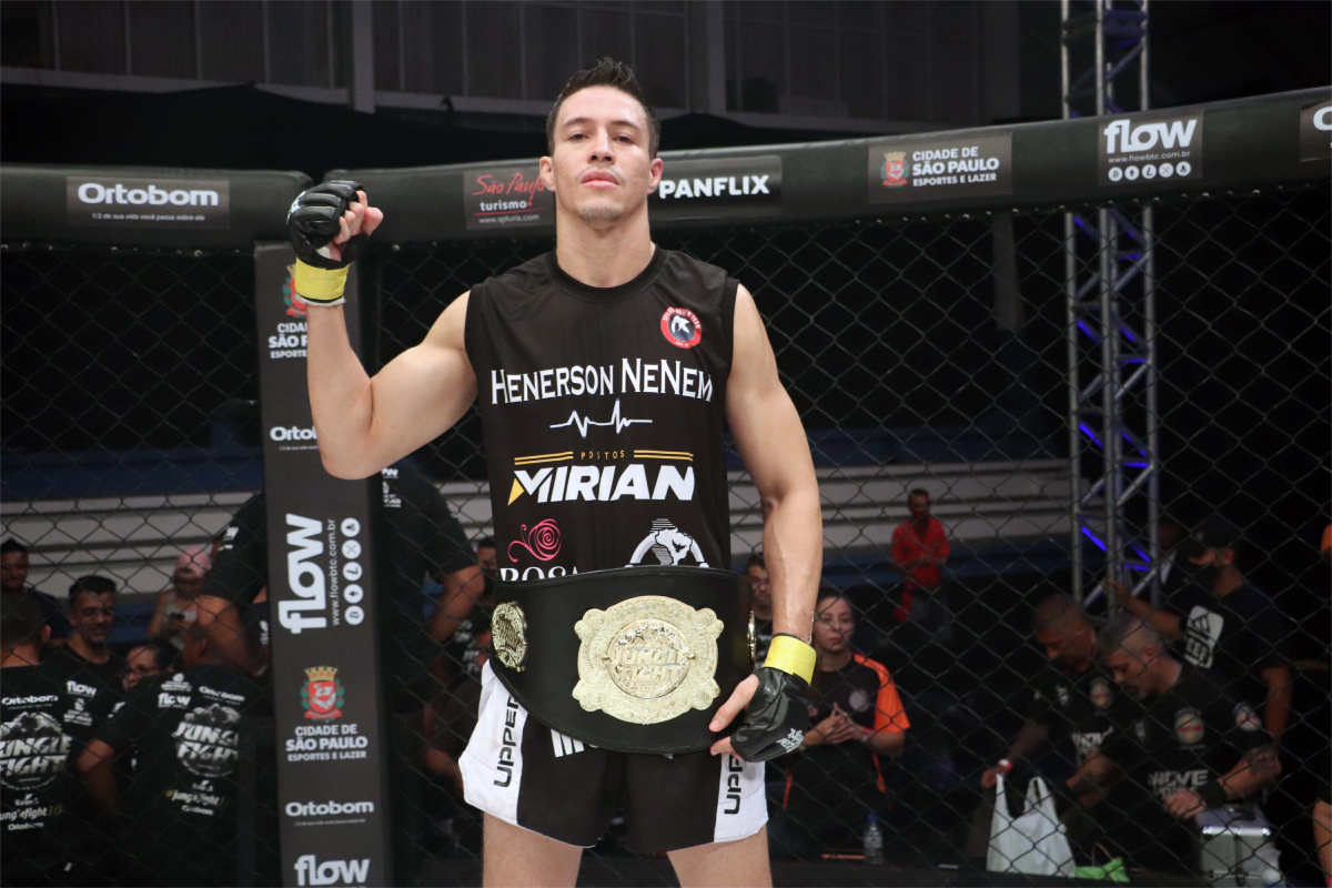 Realizado na última terça-feira (28), em São Paulo (SP), o Jungle Fight 104 coroou um ex-bancário como novo campeão peso-leve (70 kg) da entidade. Na luta principal do evento, Henerson ‘Neném’ finalizou Joelson Pantoja com um mata-leão, ainda no primeiro round, e conquistou o cinturão da divisão até 70 kg, que estava vago após o antigo dono, Lucas Almeida, abrir mão do título para assinar com o UFC.