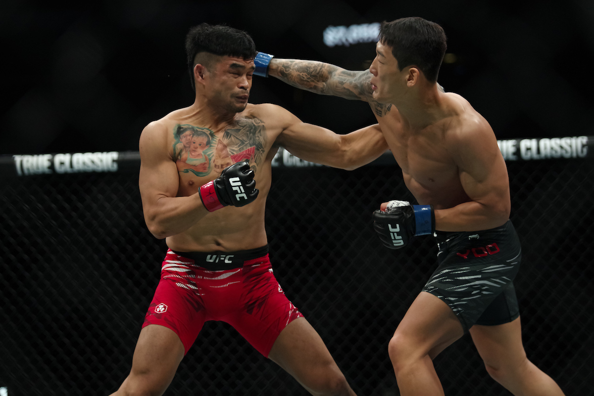 Um dos principais destaques do card preliminar, o coreano Yoo Joo-sang, discípulo do 'Zumbi Coreano', impressionou em sua estreia no UFC ao nocautear Jeka Saragih em apenas 27 segundos – Matt Davies/PxImages