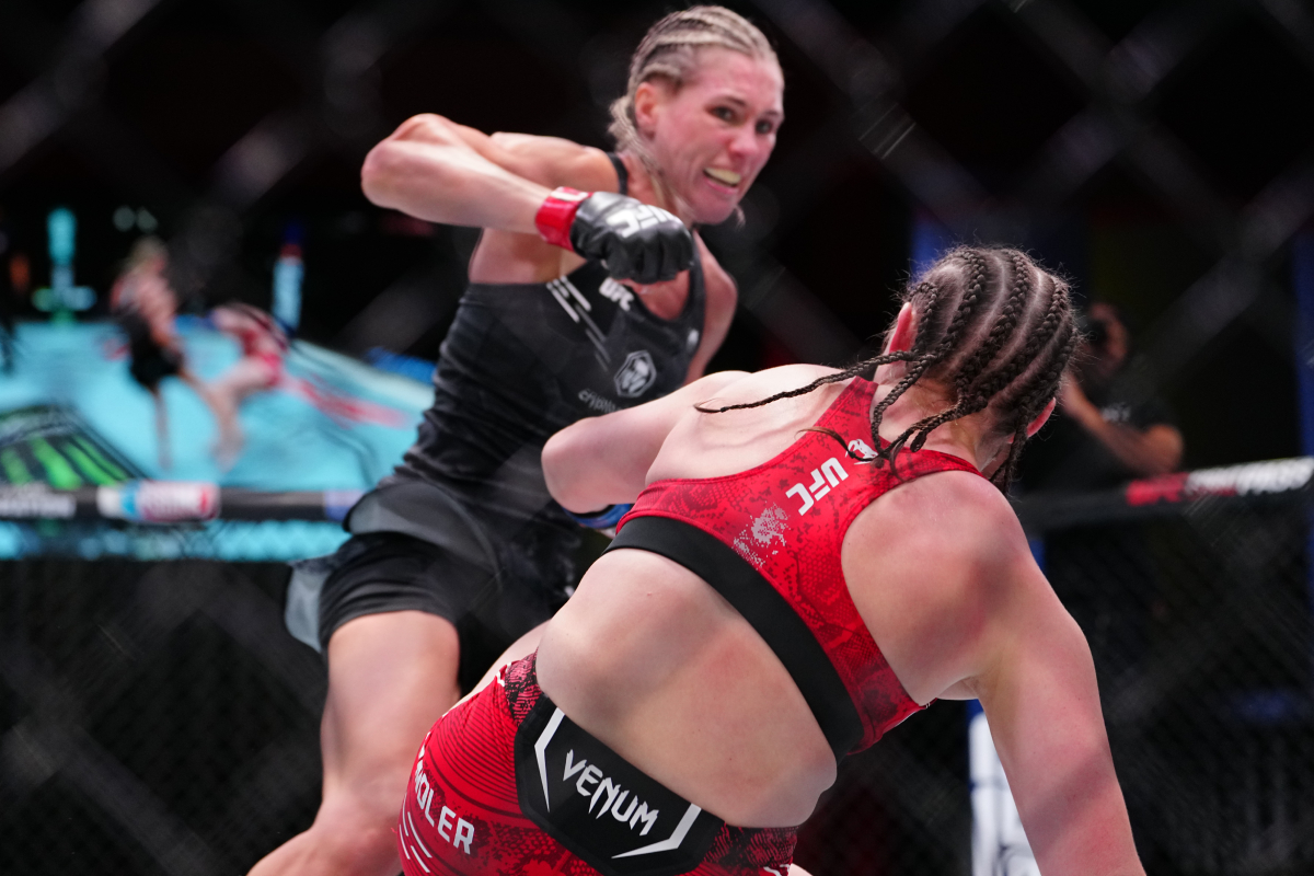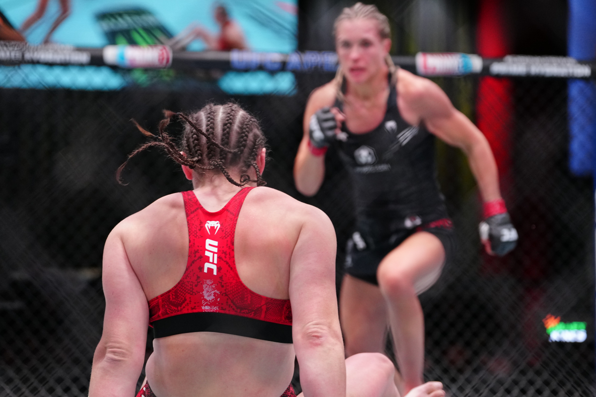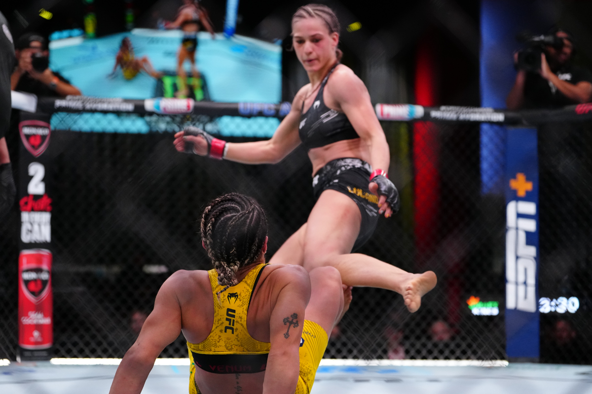 Kianzad bem que tentou uma reviravolta na luta, porém foi mais acertada por Karol do que a atingiu, perdendo a terceira luta seguida no UFC. A atleta recebeu tantos golpes da brasileira, que sangrou no octógono - Louis Grasse/AgFight