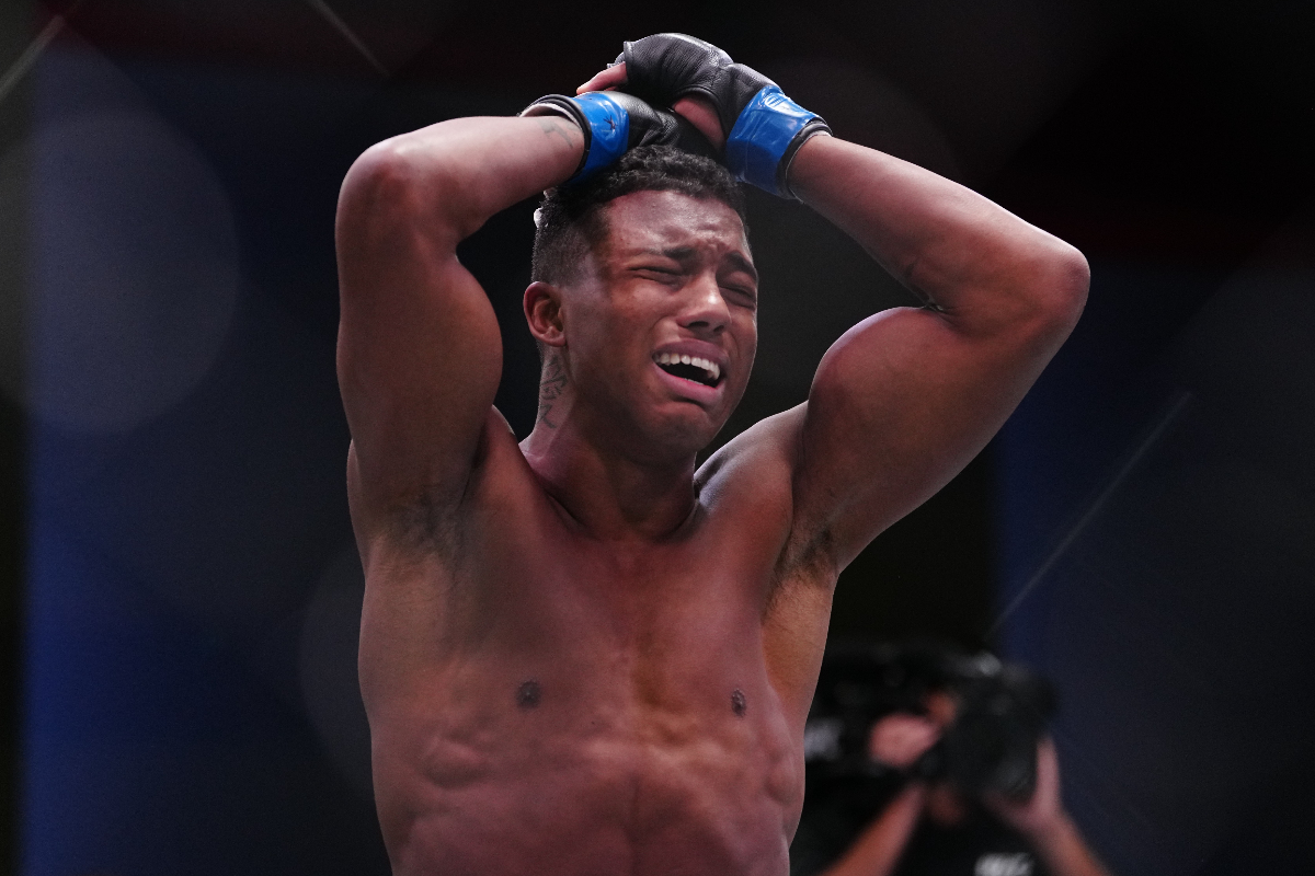 Mairon Santos não conteve as lágrimas com o desfecho da luta, que lhe garantiu um contrato com o UFC - Louis Grasse/Ag Fight