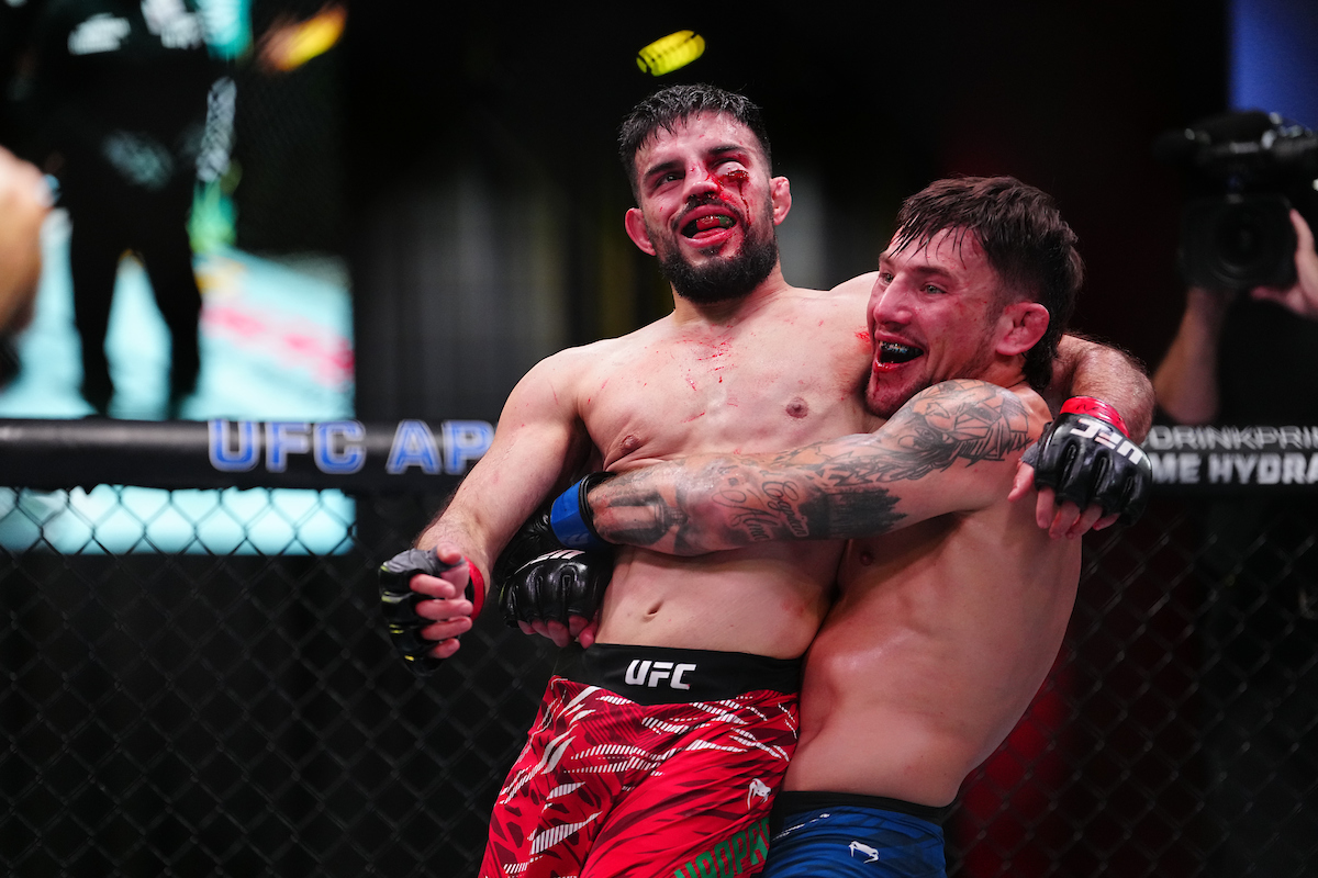 A 'Luta da Noite', porém, veio do card principal. Após travarem uma verdadeira batalha de 15 minutos, Nasrat Haqparast e Esteban Ribovics esbanjaram 'fairplay' e embolsaram, cada um, 50 mil dólares - Louis Grasse/PxImages