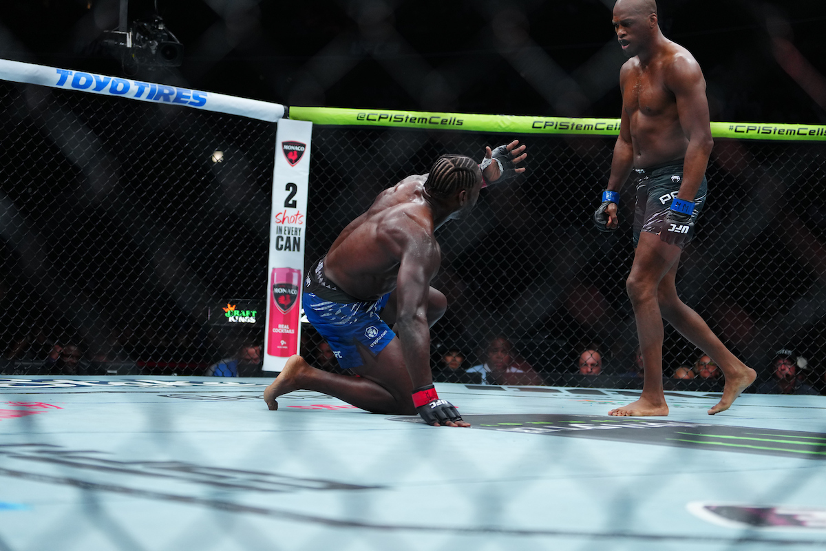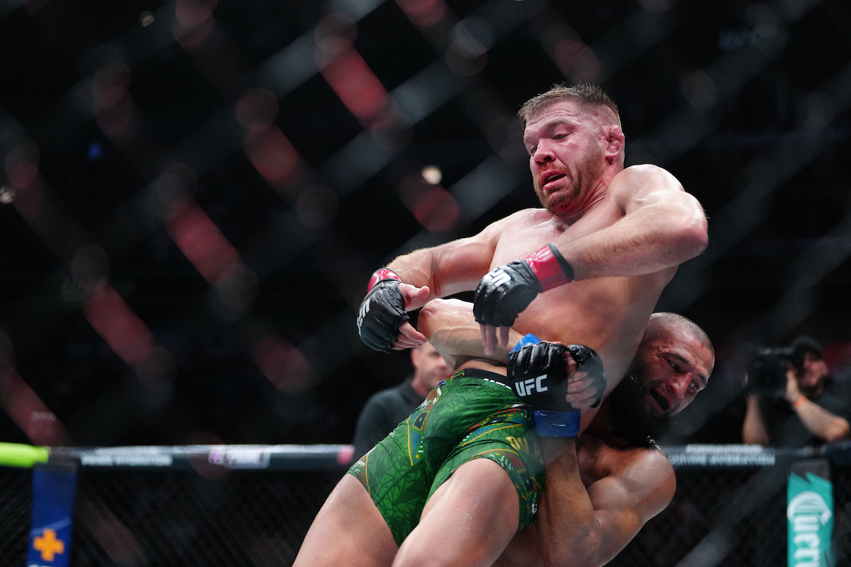 O amplo domínio do wrestler russo se deu, principalmente, na luta agarrada, onde Du Plessis não parecia encontrar maneiras de se livrar do 'cobertor humano' Khamzat Chimaev, como o próprio sul-africano o batizou após a derrota - Louis Grasse/PxImages