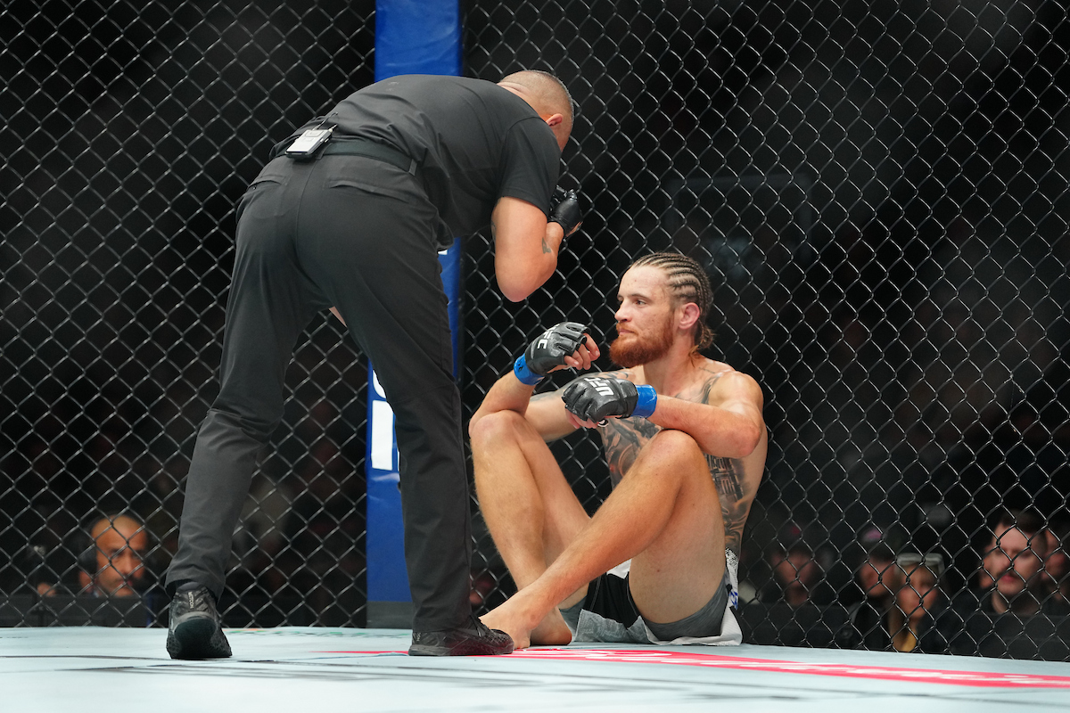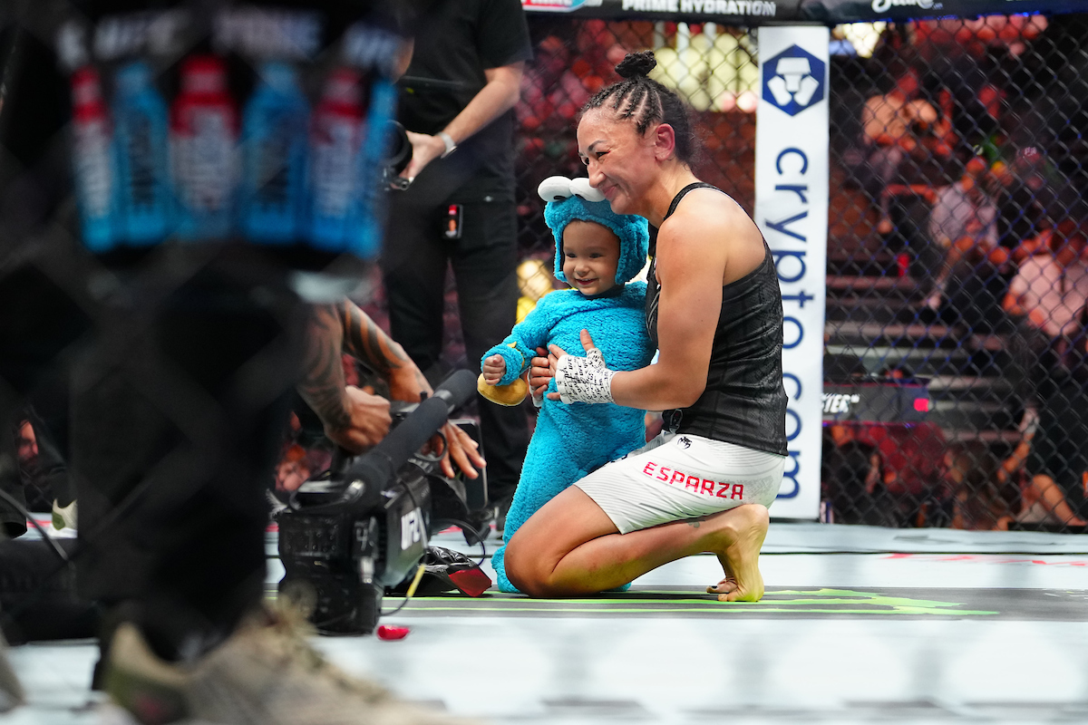 Após o confronto, Esparza protagonizou um 'momento fofura' ao lado do filho, colocando as luvas no centro do octógono e oficializando sua aposentadoria - Louis Grasse/PxImages