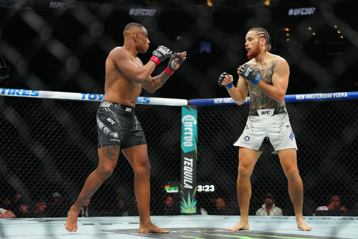 O primeiro brasileiro a competir no UFC 307 foi César Almeida, que duelou contra Ihor Potieria no card prelimincar - Louis Grasse/PxImages