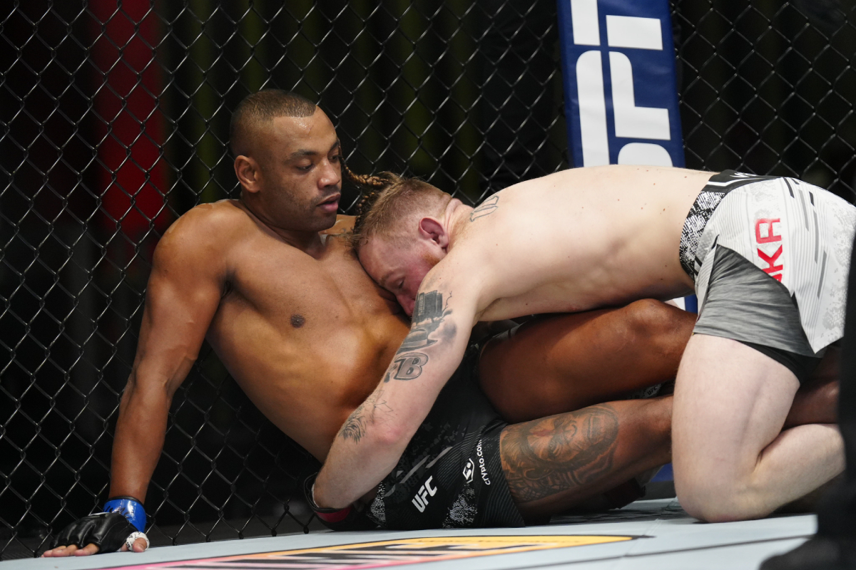 Ex-rival de Alex Poatan no kickboxing, o striker paulista sofreu com o grappling de Dylan Budka no primeiro round - Louis Grasse/Ag Fight