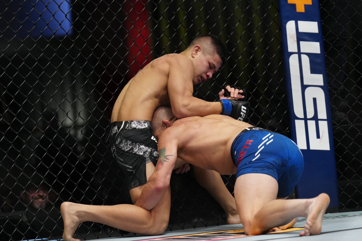 Para estrear com o pé direito no Ultimate, Jean precisou superar um início complicado de luta, onde Argueta utilizou seu incansável wrestling para travar o lutador brasileiro - Louis Grasse/Ag Fight