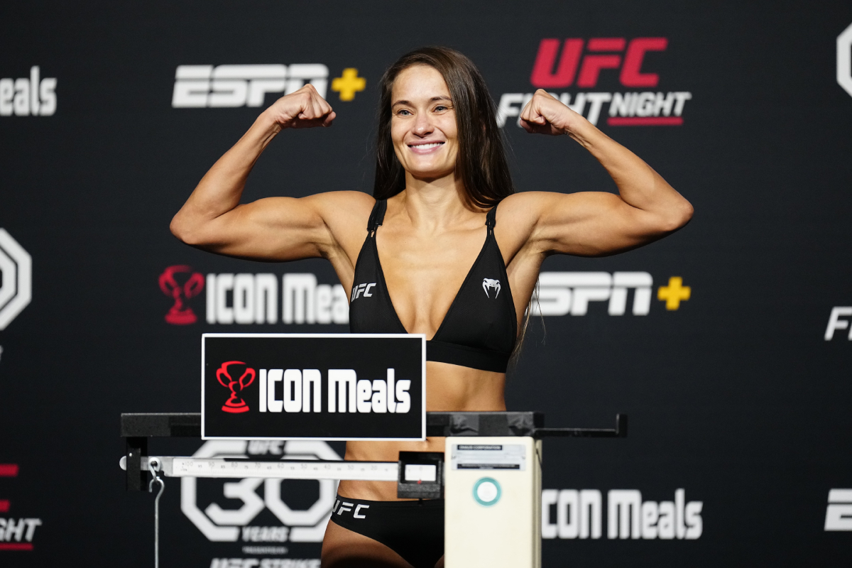 Diana Belbita, por sinal, passou sem sustos pela balança da pesagem oficial do UFC Vegas 80. A romena, que venceu Maria Oliveira na sua última luta, vai em busca de sua primeira sequência de vitórias no Ultimate - Louis Grasse/Ag Fight