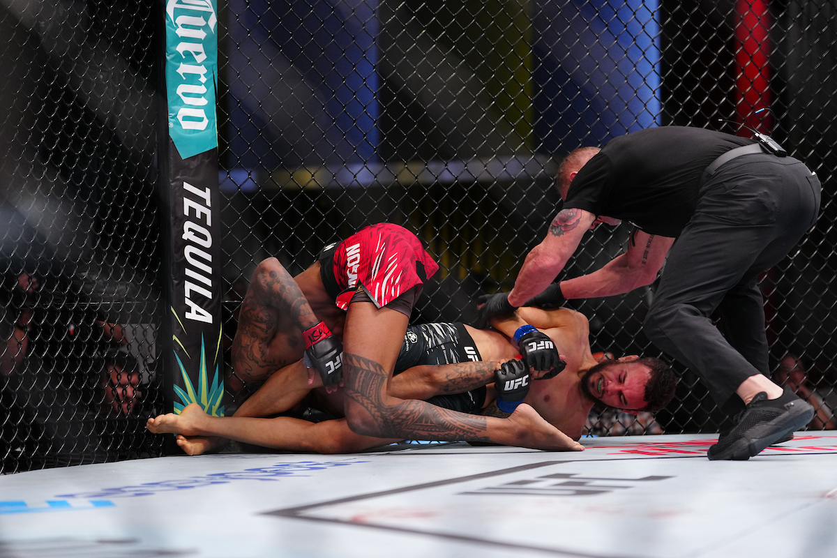 Sábado também foi dia de festa para Felipe Bunes, que finalizou Jose Johnson no encerramento do card preliminar e conquistou sua primeira vitória no UFC - Louis Grasse/Ag Fight