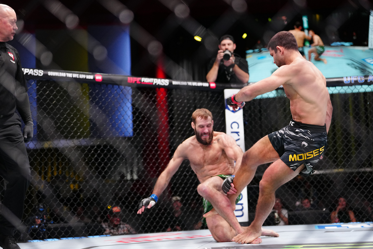 Já experiente no Ultimate, Thiago Moisés conquistou uma importante vitória no sábado, com o auxílio luxuoso de seus devastadores chutes baixos, que abriram caminho para o triunfo diante de Trey Ogden - Louis Grasse/PxImages