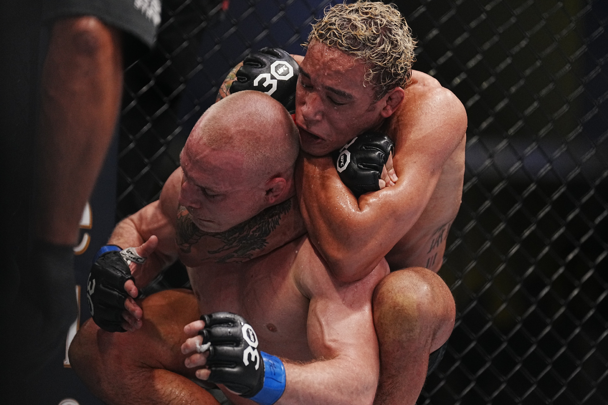 No 'co-main event' do UFC Vegas 79, pelo peso-pena (66 kg), Bryce Mitchell venceu Dan Ige por decisão unânime, porém o momento mais marcante do encontro aconteceu logo após a luta. Ainda no octógono, a promessa do MMA mostrou 'fairplay' e prometeu doar parte de seu salário ao havaiano para ajudar as vítimas dos recentes incêndios florestais no Havaí - Louis Grasse/AgFight