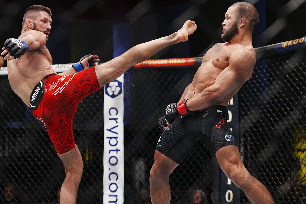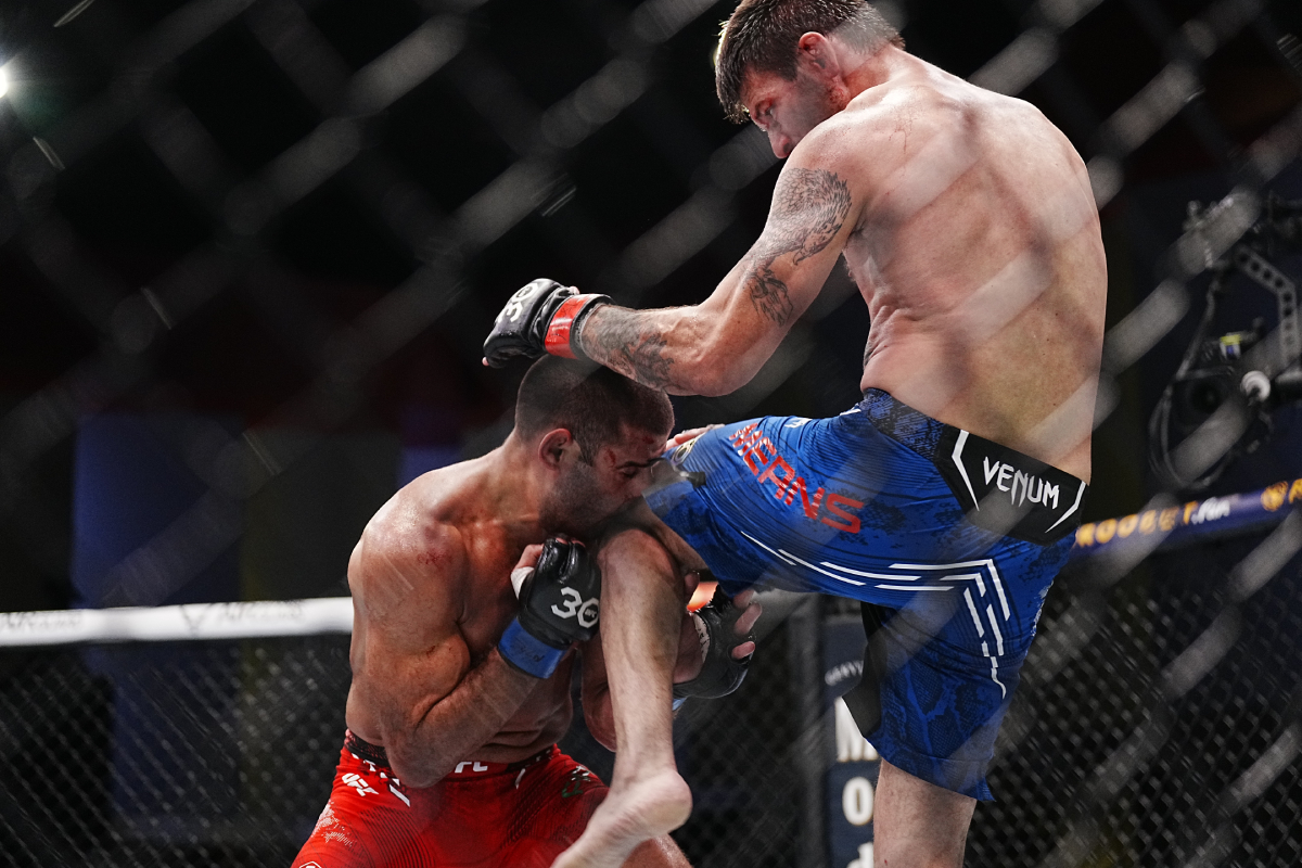 Enquanto teve luta, Mateusz Gamrot e Rafael Fiziev protagonizaram um encontro de alto nível no peso-leve (70 kg) do UFC. Em certo momento, Fiziev, especialista em trocação, esbanjou reflexo ao esquivar de um chute alto aplicado por Gamrot. De todo modo, com a vitória por nocaute, Mateusz deve ocupar a posição de Rafael no ranking da categoria, subindo do sétimo para o sexto lugar - Louis Grasse/AgFight