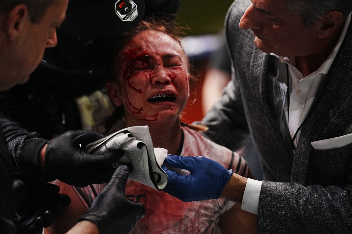 A revanche contra Marina Rodriguez não foi nada boa para Michelle Waterson-Gomez. A americana, veterana do peso-palha (52 kg) do UFC, foi presa fácil para a rival e acabou nocauteada no segundo round. Com o rosto irreconhecível por conta dos golpes aplicados pela brasileira, 'The Karate Hottie' chorou no octógono. Para piorar a situação, a atleta, com quatro derrotas seguidas, se encontra em risco na liga - Louis Grasse/AgFight