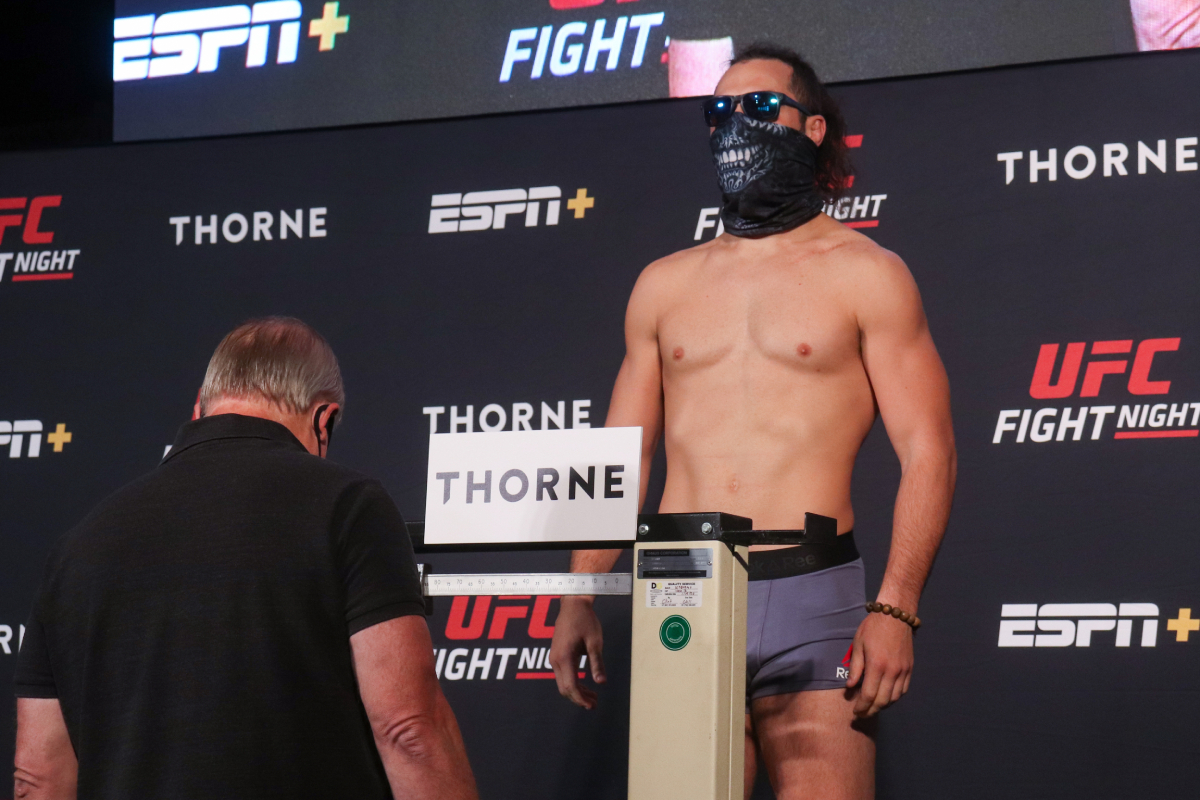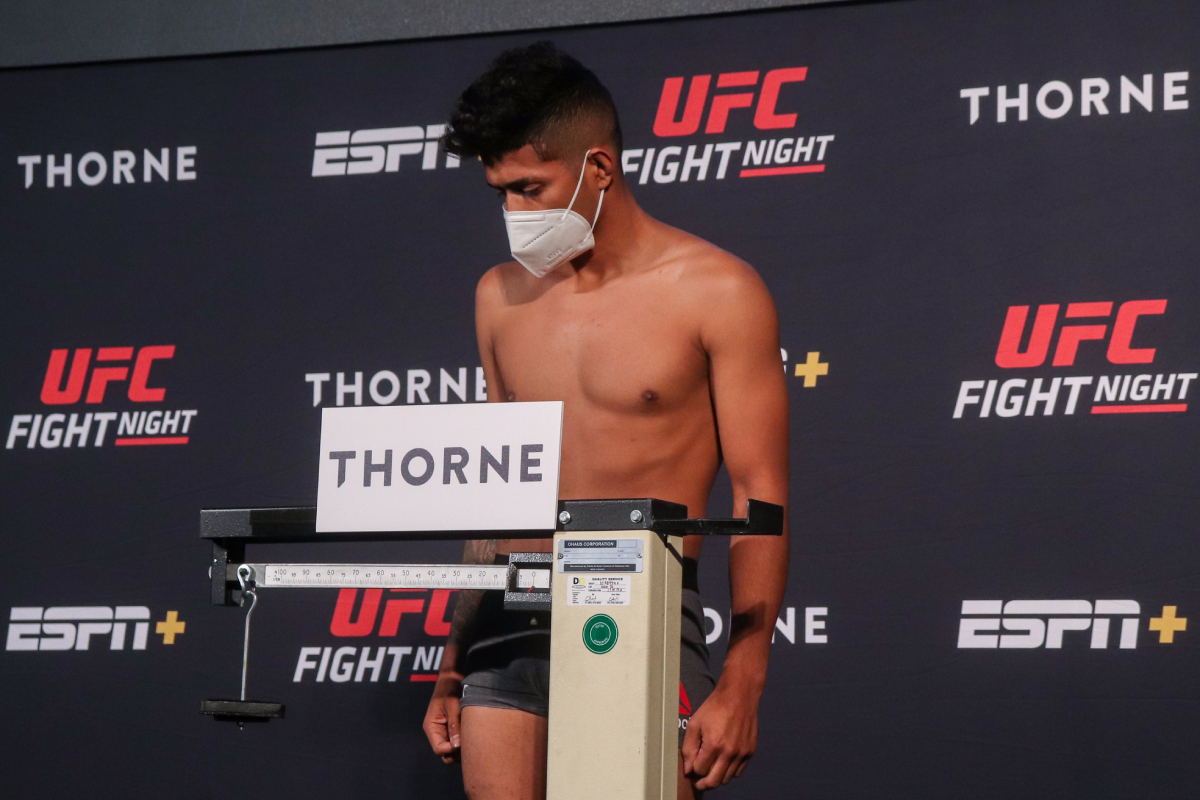 Único atleta a subir na balança e não atingir o peso ideal, Jonathan Martinez ficou dois quilos acima do permitido e precisou pagar 30% de sua bolsa para poder enfrentar Frankie Saenz no card do UFC Las Vegas - Diego Ribas