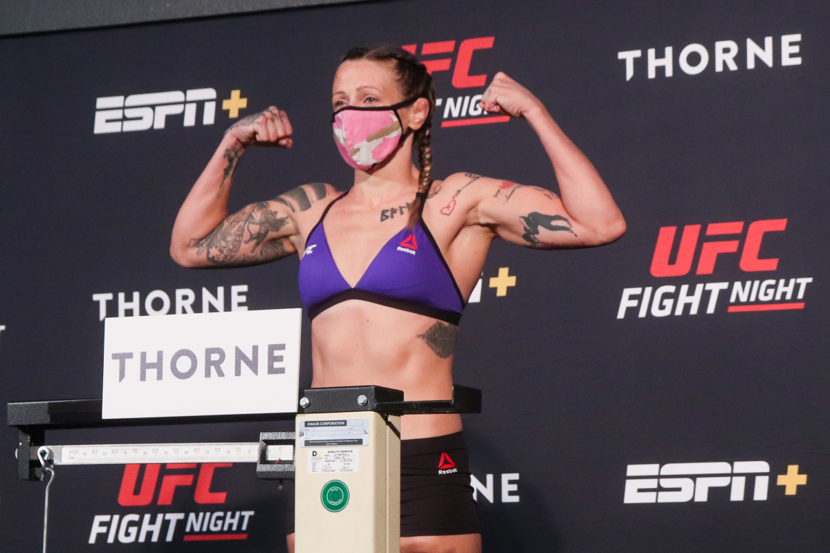 Para a sorte de Jennifer, Joanne Calderwood, número três do ranking dos pesos-moscas (57 kg), aceitou enfrentá-la mesmo com menos de duas semanas de treino para o combate. Curiosamente, a escocesa desmaiou nos bastidores do show após ser derrotada no primeiro round - Diego Ribas