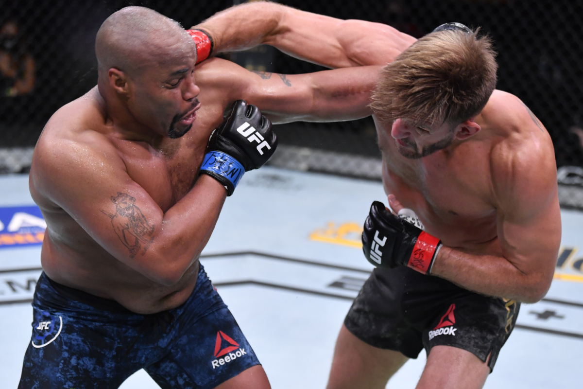 Por sua vez, Daniel Cormier declarou sua aposentadoria do MMA. Curiosamente, ele acumula derrotas apenas para Jon Jones e Miocic, atuais campeões dos meio-pesados e dos pesos-pesados - UFC/Divulgação
