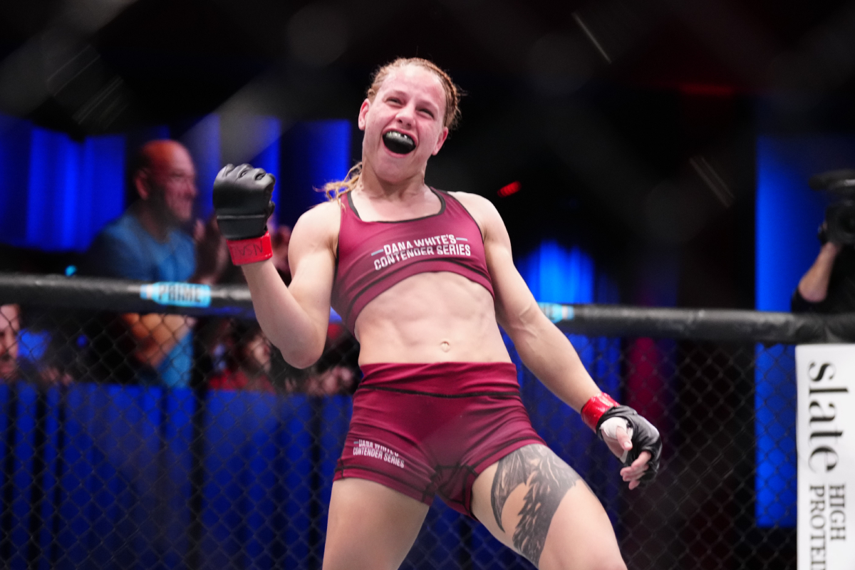 Depois da vitória, a jovem de 25 anos comemorou bastante a conquista após ter deixado escapar o contrato na temporada passada do Contender Series, ao ser superada pela canadense Jasmine Jasudavicius - Louis Grasse/Ag Fight