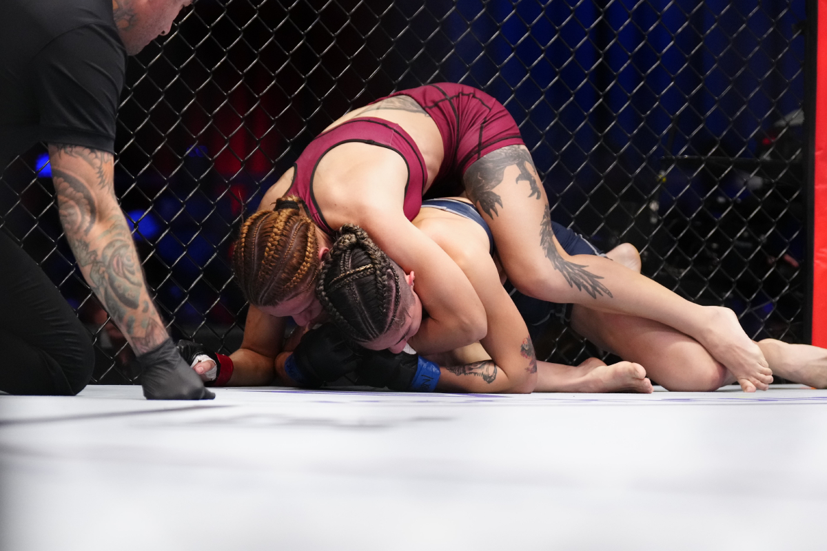 Superior à adversária, a paraguaia Patricia Alujas, em pé e no chão, Julia chegou ao triunfo via finalização no segundo round da disputa - Louis Grasse/Ag Fight
