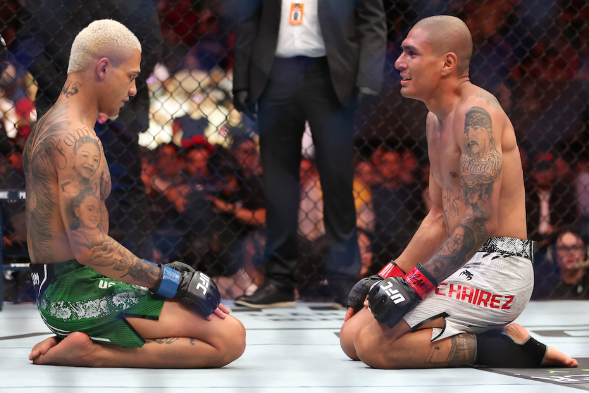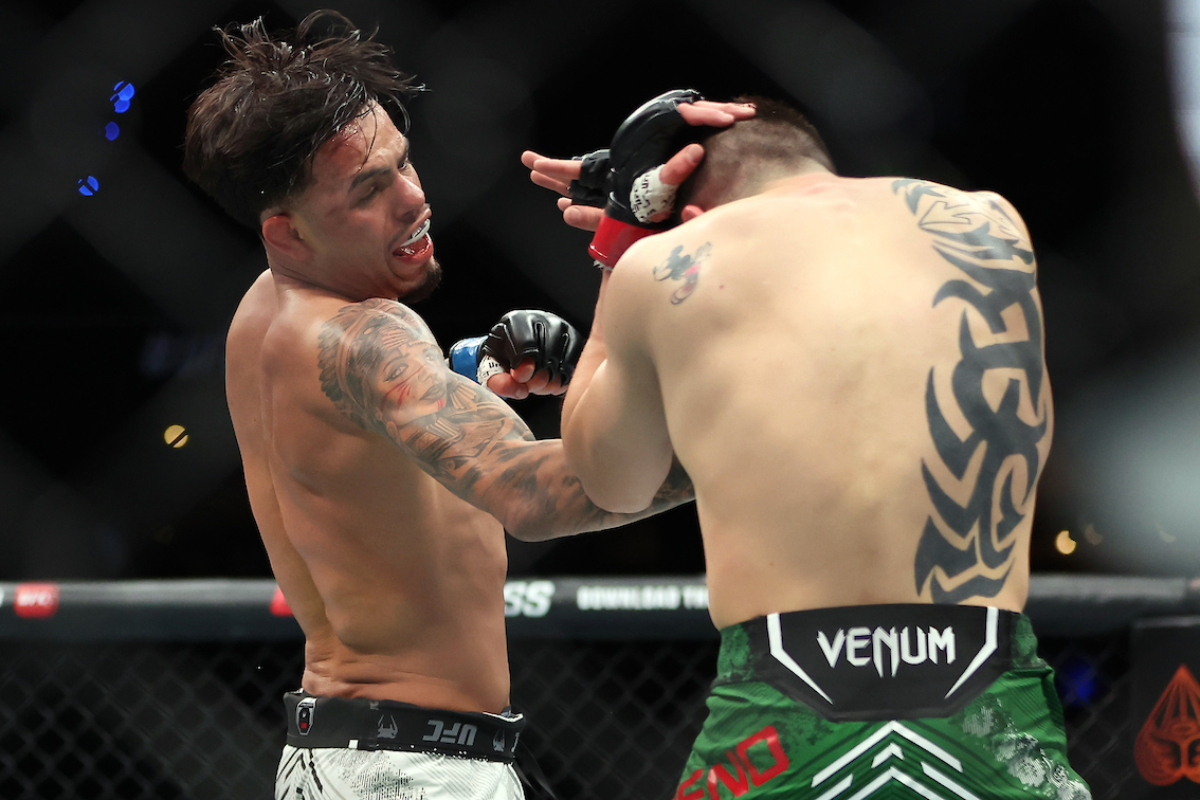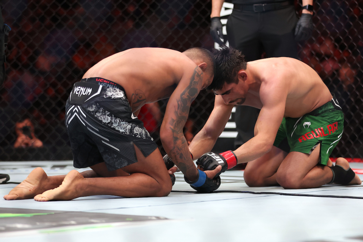 Em luta que gerou polêmica, Mateus 'Bocão' fez sua melhor atuação no UFC, mas acabou derrotado pelo mexicano Jesús Santos Aguilar por decisão dividida. Ao final do combate, os atletas, ainda no octógono, mostraram fairplay - Alejandro Salazar/AgFight