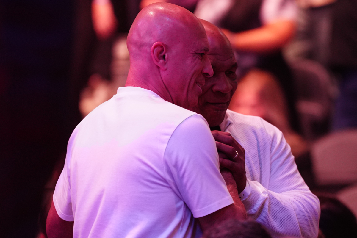 Diversas personalidades marcaram presença no grandioso UFC 300. Lendas dos esportes de combate, Royce Gracie e Mike Tyson posaram juntos para fotos na 'T-Mobile Arena' - Louis Grasse/AgFight