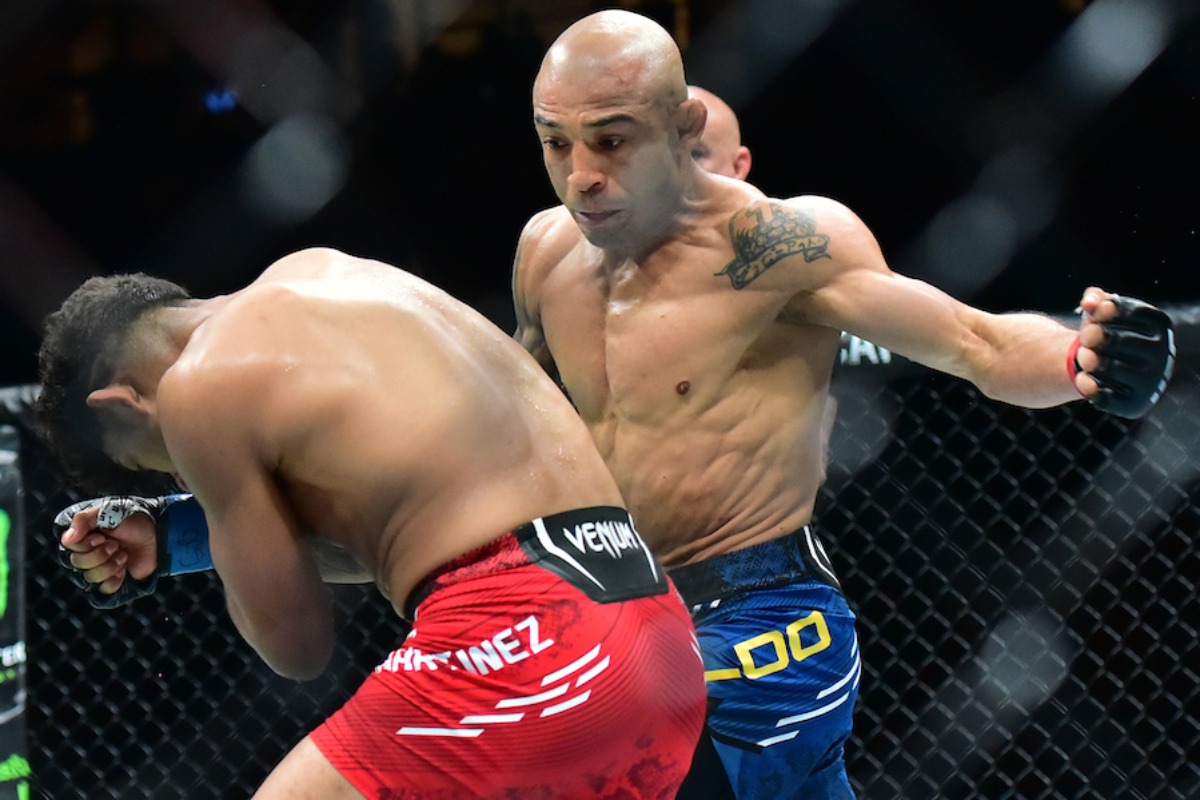 No 'co-main event', José Aldo ignorou o tempo afastado do MMA e venceu bem Jonathan Martinez no peso-galo (61 kg). A luta foi movimentada, mas o veterano do esporte, de fato, aplicou os melhores golpes - Leandro Bernardes/AgFight