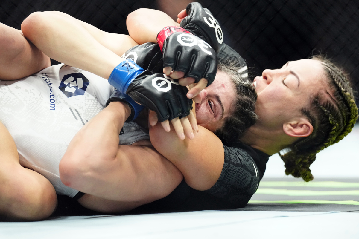 Em seu retorno ao peso-galo do UFC, Miesha Tate deu uma aula de grappling para Julia Avila e finalizou a luta no terceiro round via 'mata-leão' - Louis Grasse/AgFight