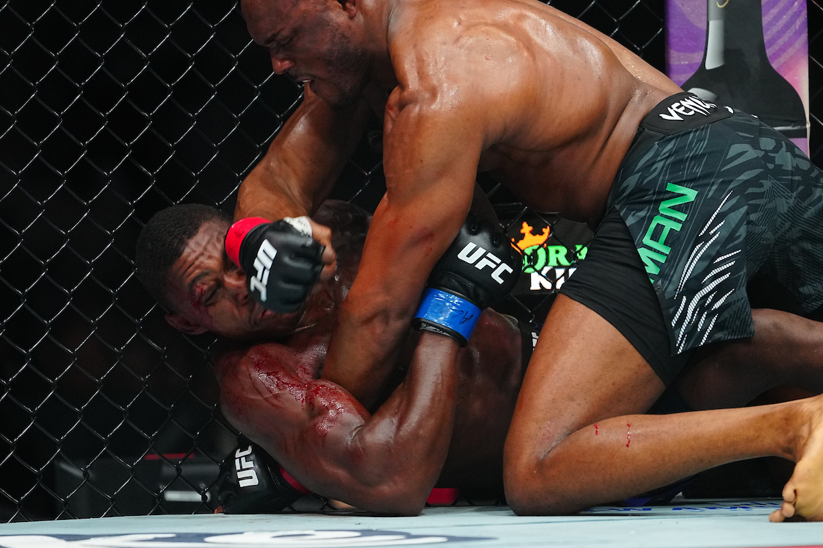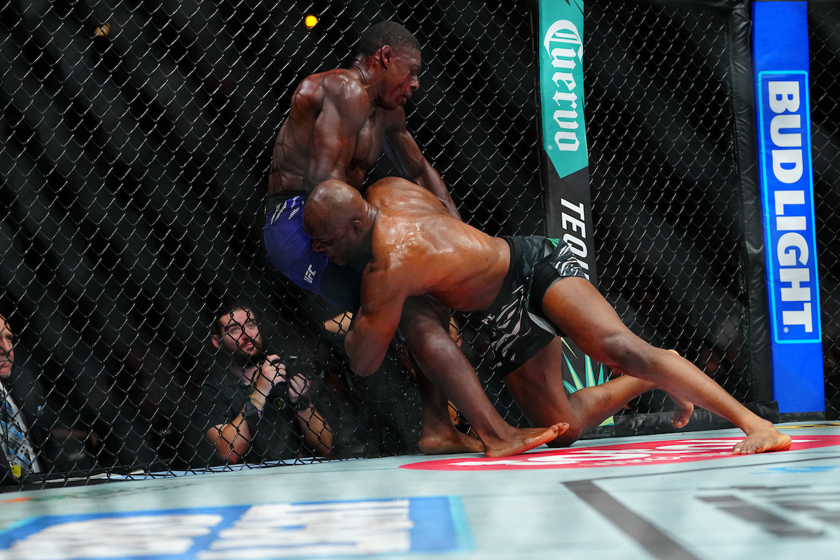De volta às raízes! O wrestler Kamaru Usman usou seu jogo de quedas para dominar Joaquin Buckley no 'main event' da noite - Louis Grasse/PxImages
