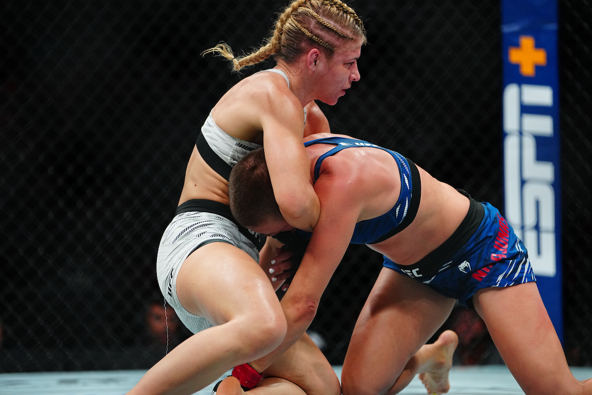 Mesmo diante de uma rival especialista no grappling, a ex-campeã peso-palha usou sua habilidade na luta agarrada para garantir a vitória nas papeletas dos juízes - Louis Grasse/PxImages