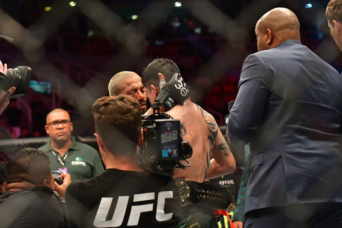 Após 25 minutos de emoção, o brasileiro levou a melhor e vestiu o cinturão do UFC pela primeira vez na carreira - Louis Grasse/Ag Fight