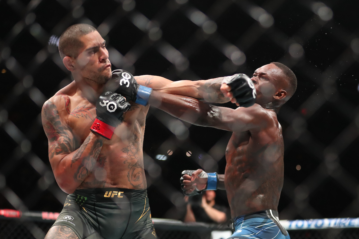Três meses depois, em abril, Alex Poatan e Israel Adesanya fizeram uma aguardada revanche no UFC 287 após o brasileiro chocar o mundo no ano anterior - Alejandro Salazar/Ag Fight