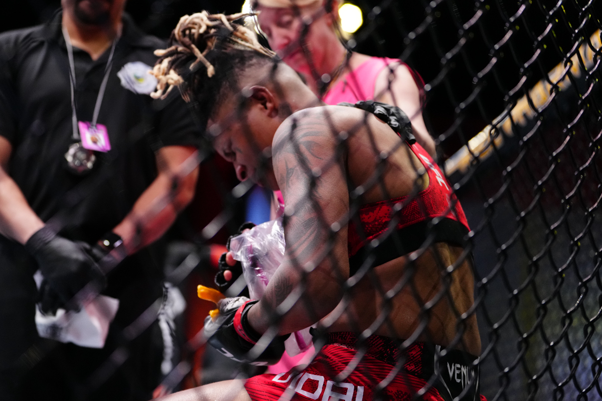 Mas diante de Piera Rodriguez, a brasileira sofreu duas cabeçadas ilegais e não conseguiu prosseguir na luta, sendo declarada vencedora de forma polêmica - Louis Grasse/Ag Fight