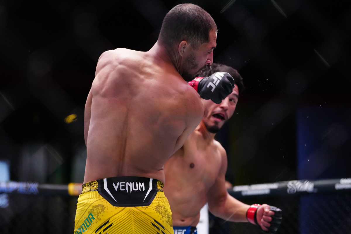 O primeiro brasileiro a entrar em ação no UFC Vegas 92 foi Kleydson Abreu, que acabou superado pelo chinês Heili Alateng - Louis Grasse/Ag Fight