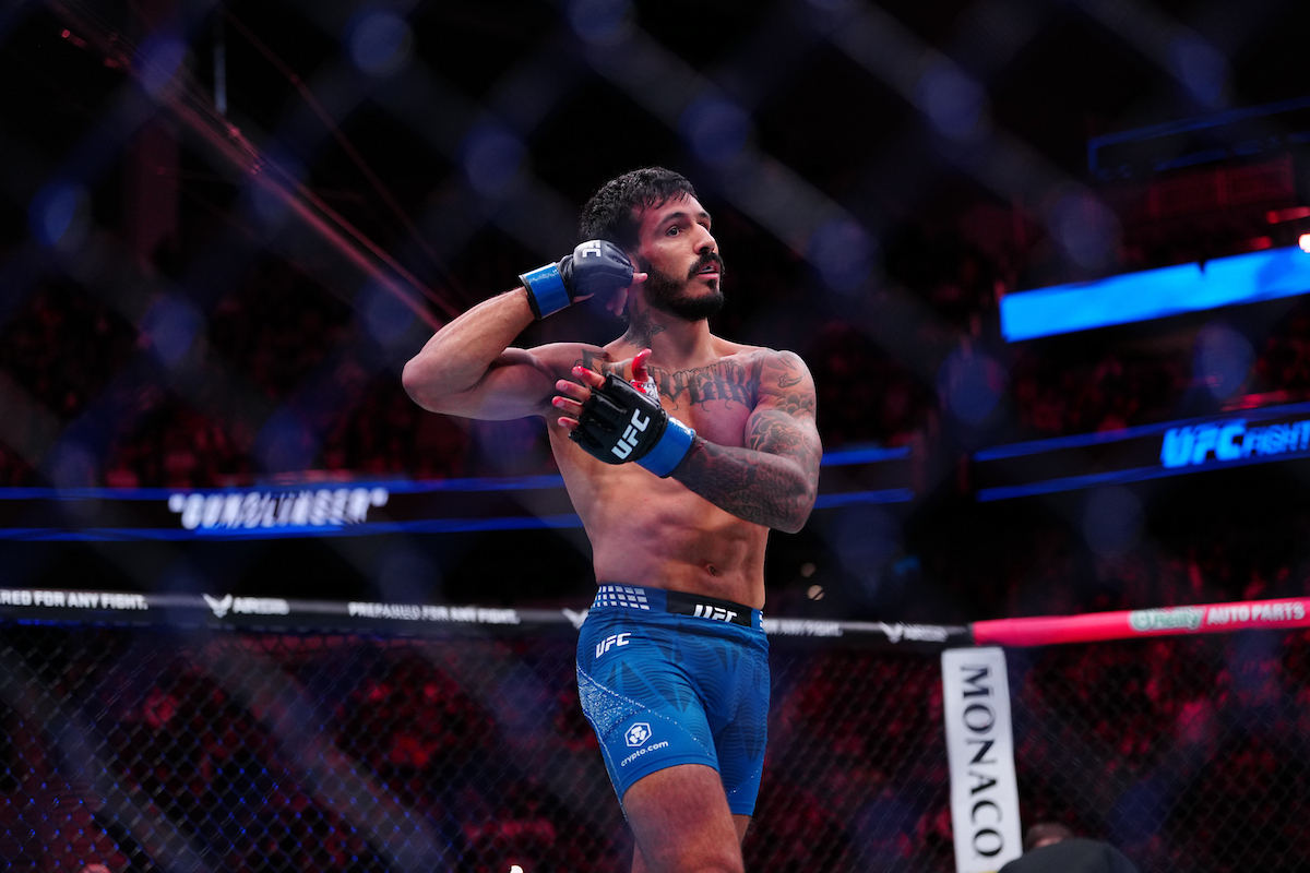 Com o tradicional gesto, o grappler americano retirou as luvas e deixou no centro do octógono - Louis Grasse/PxImages