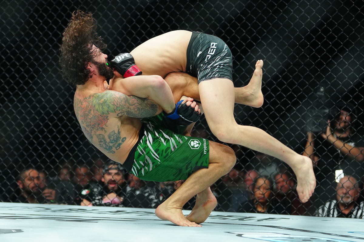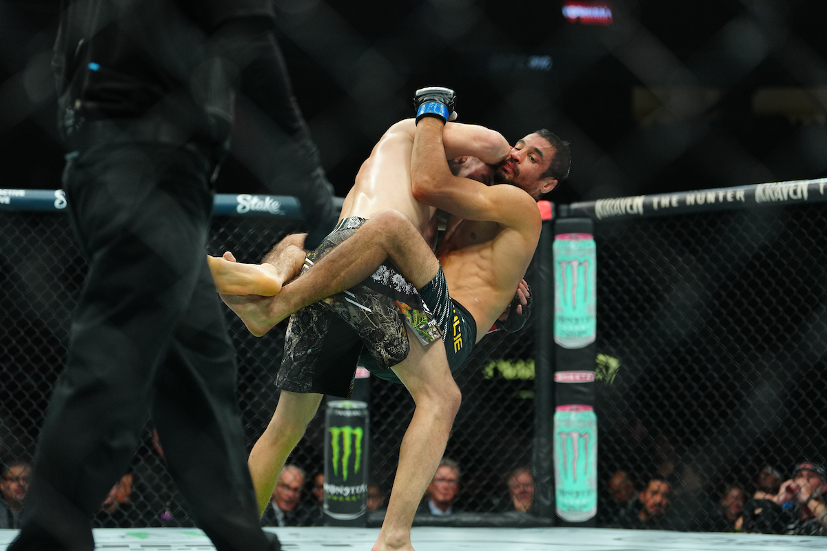 Por outro lado, Shavkat Rakhmonov teve motivos para sorrir. Apesar de passar um susto e quase ser finalizado por Ian Machado Garry no co-main event do UFC 310, o cazaque venceu a luta, manteve a invencibilidade e garantiu o próximo 'title shot' na divisão dos meio-médios - Louis Grasse/PxImages